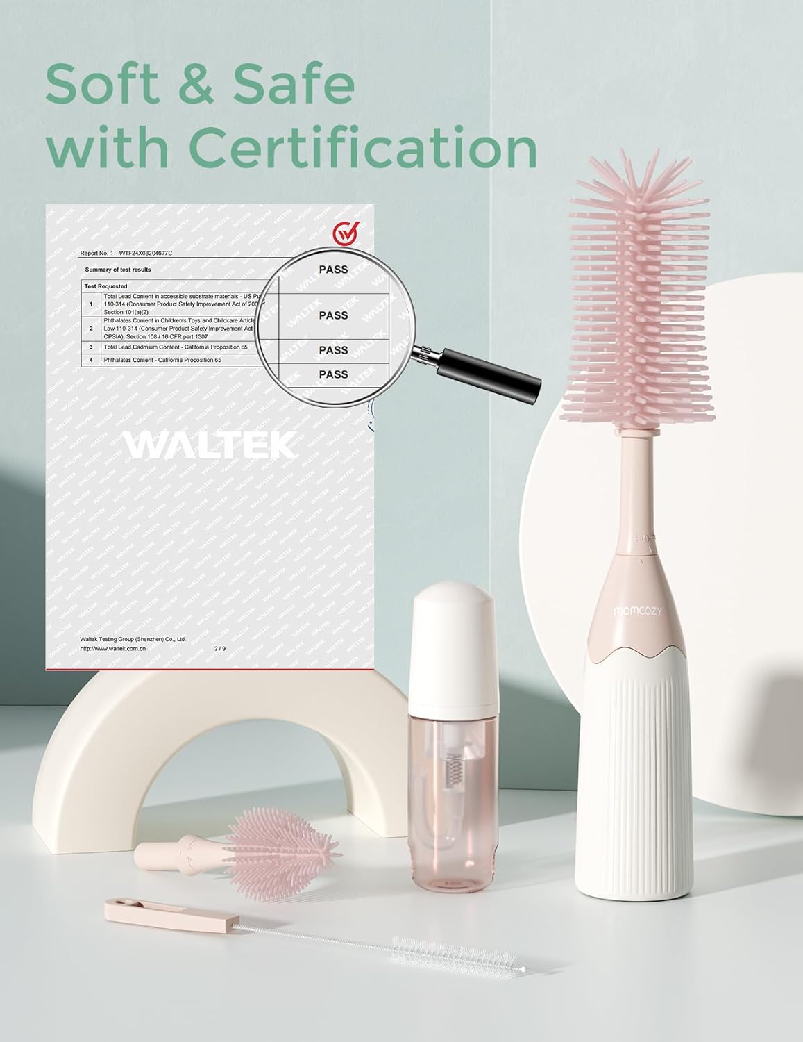 • Furça silikoni shumë të butë – për pastrim pa gërvishtje; ideale për shishe delikate, thithës, pompë dhe më shumë.
