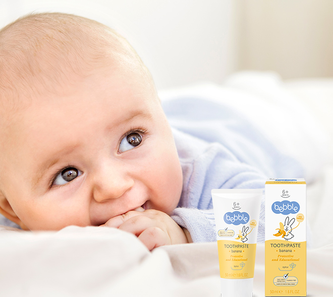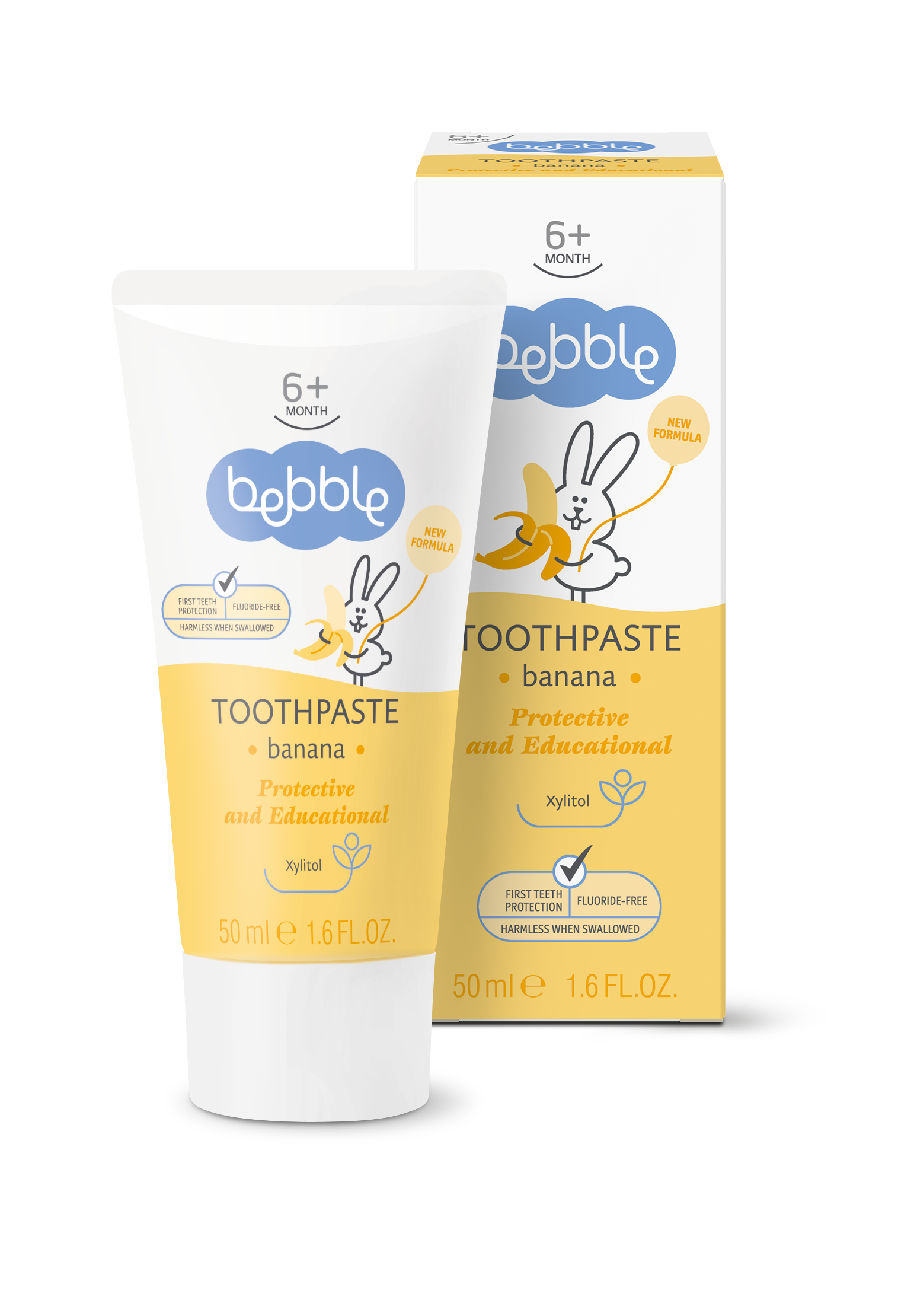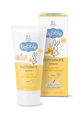 Përbërësit anti-karies dhe me abraziv të ulët të Bebble Baby Toothpaste pastroni butësisht dhëmbët e parë. Ksilitoli natyral parandalon rritjen e mikroorganizmave dhe ndihmon në forcimin e smaltit të dhëmbëve. Pasta jonë për bebe nuk përmban fluor, konservues apo dioksid titani, gjë që e bën të padëmshme nëse gëlltitet. Foshnjat e duan shijen e lehtë të bananes dhe ngjyrën e saj të këndshme. Kjo paste mund të përdoret që nga mosha shumë e vogël për të ndihmuar në krijimin e një rutine të shëndetshme të higjienës orale.