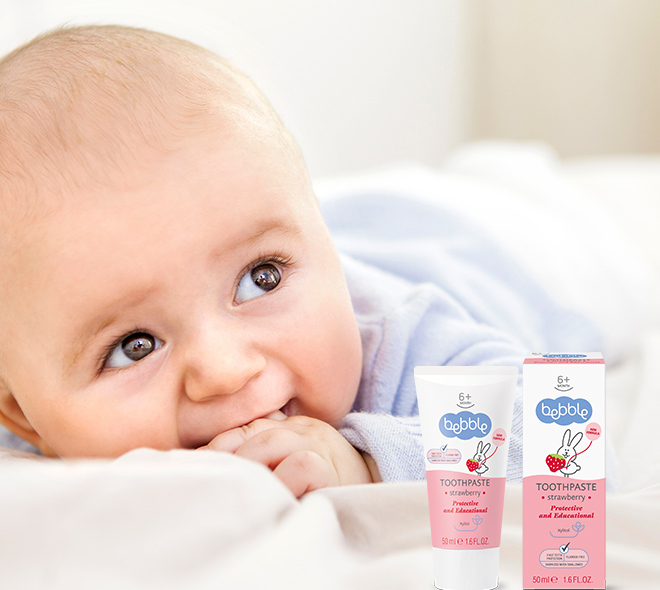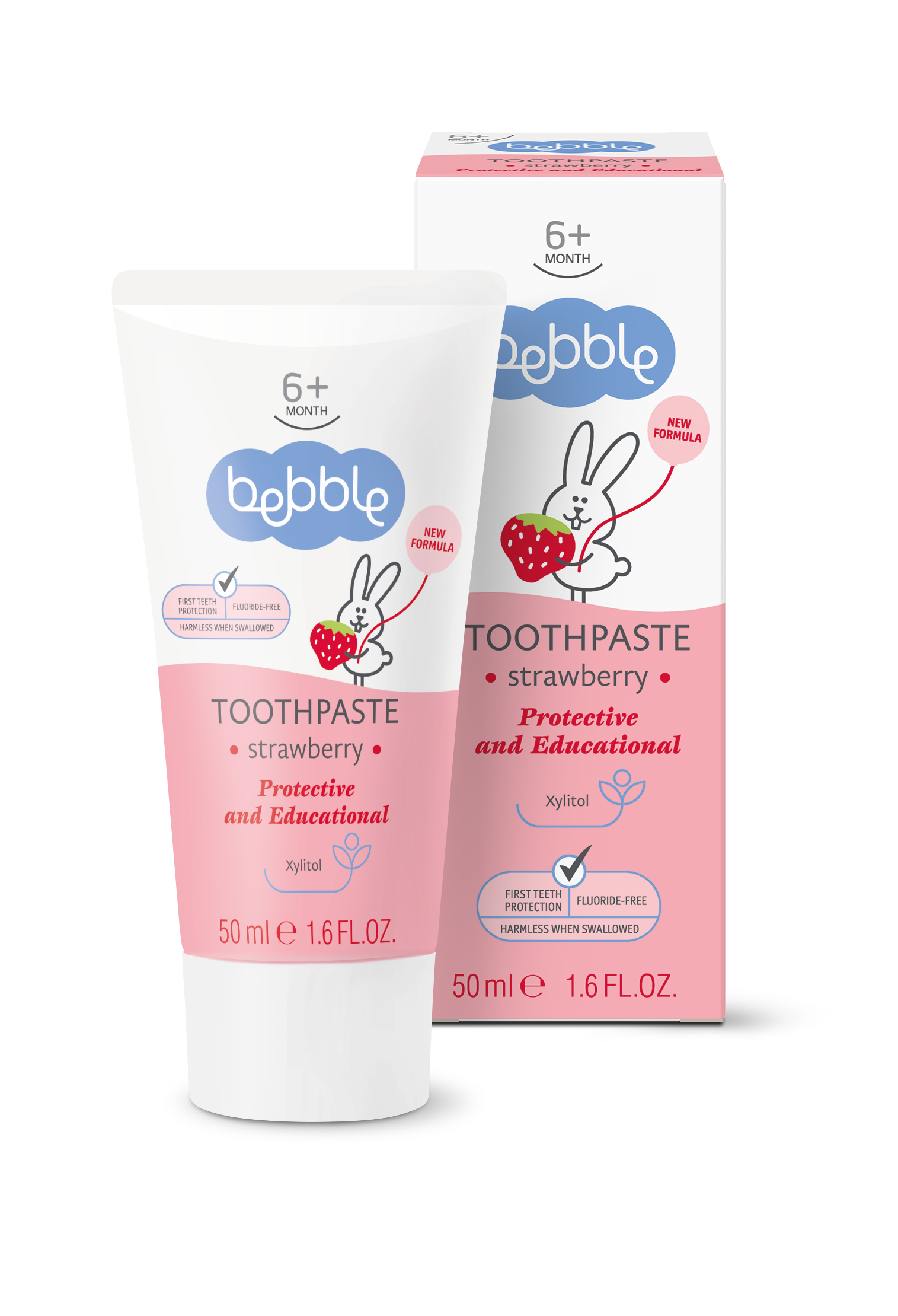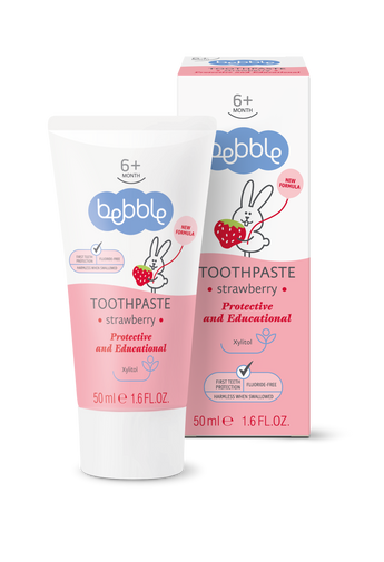 Përbërësit me abraziv të ulët dhe anti-karies të Bebble Baby Toothpaste pastroni butësisht dhëmbët e parë. Ksilitoli natyral parandalon rritjen e mikroorganizmave dhe ndihmon në forcimin e smaltit të dhëmbëve. Pasta jonë nuk përmban fluor, konservues apo dioksid titani, prandaj është e padëmshme nëse gëlltitet. Foshnjat e duan shijen dhe ngjyrën e lehtë të luleshtrydhes, duke e bërë pastrimin e dhëmbëve një moment të këndshëm dhe argëtues.