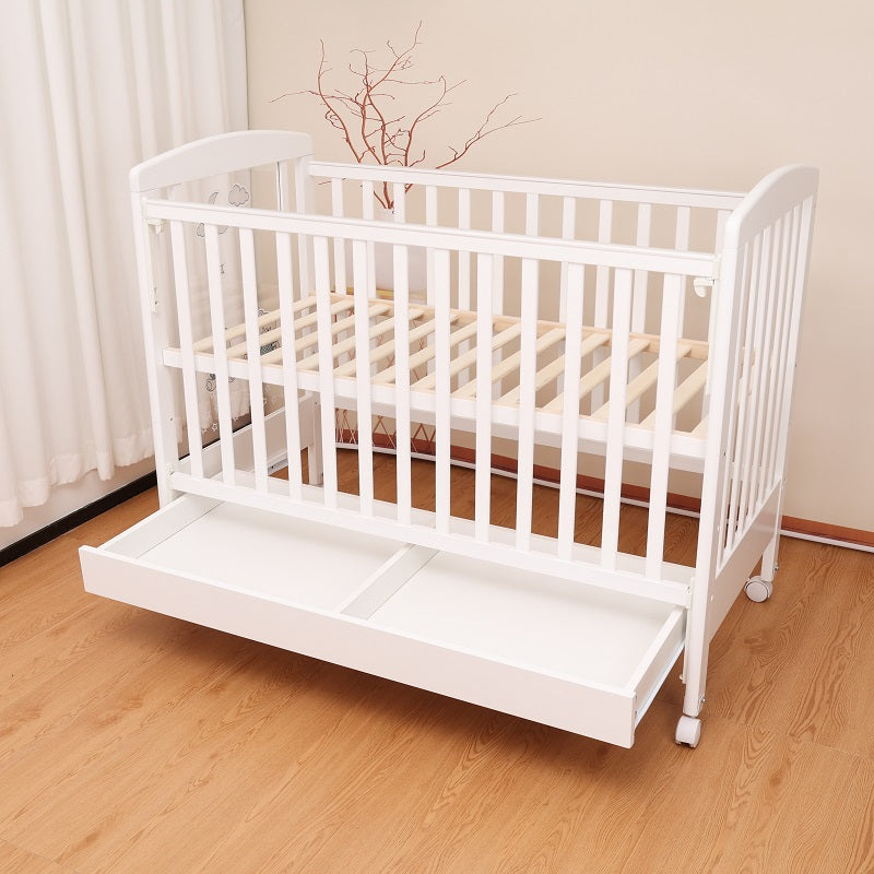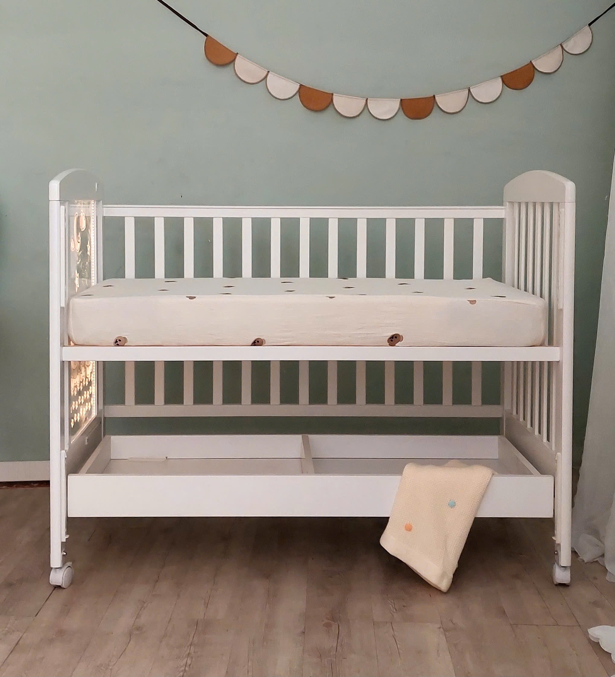 Poshtë shtratit gjendet edhe një dollap praktik, i cili ofron hapësirë për ruajtjen e gjërave të përditshme të bebes.