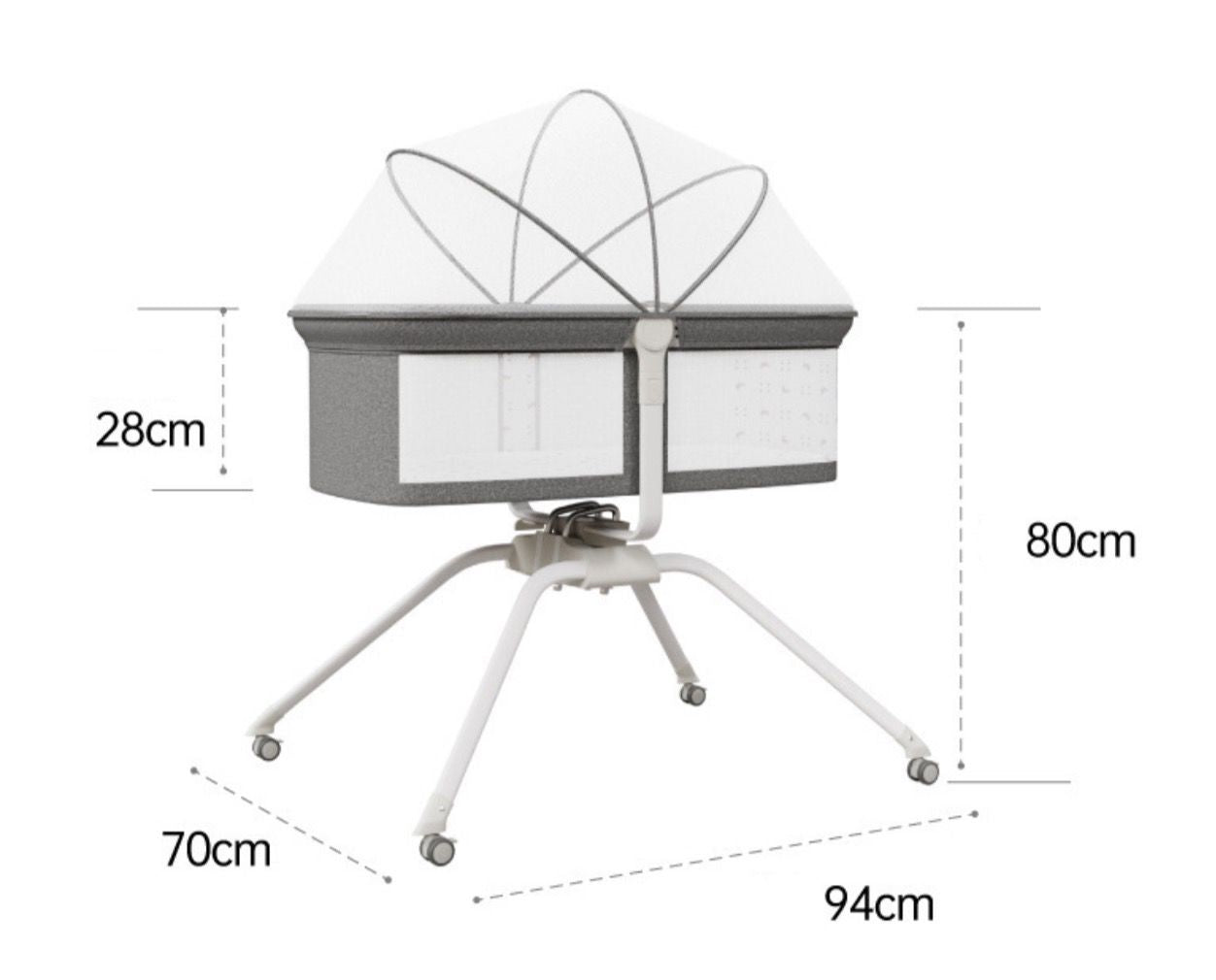 Siguroni një hapësirë të sigurt dhe të qetë për vogëlushin tuaj me këtë shtrat për bebe me rrota, një investim në lumturinë dhe komoditetin e përditshenm.